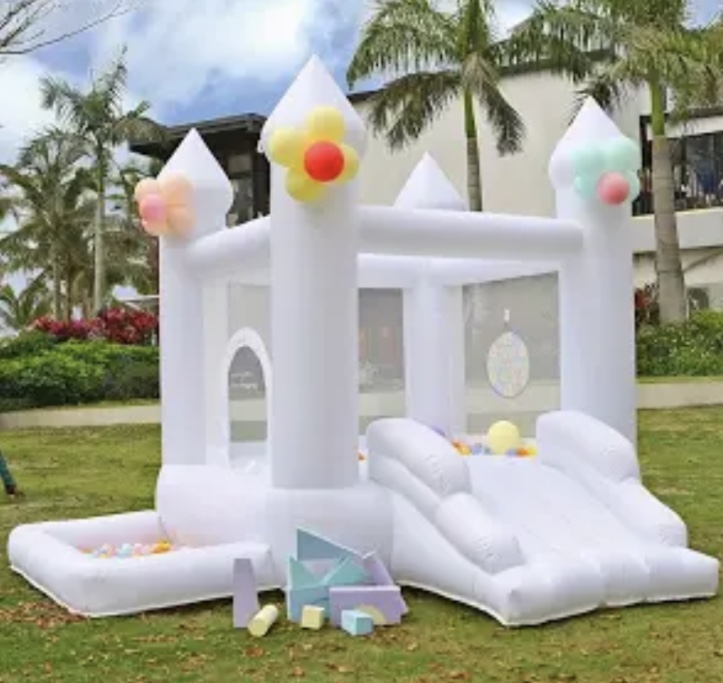 White bouncing house, inflatable castle, children's bouncing house, family backyard bouncing castle, wedding, suitable for courtyard, children's gift activities, parties, (9 feet long x 9 feet wide). Great for Princess theme Birthday Parties
