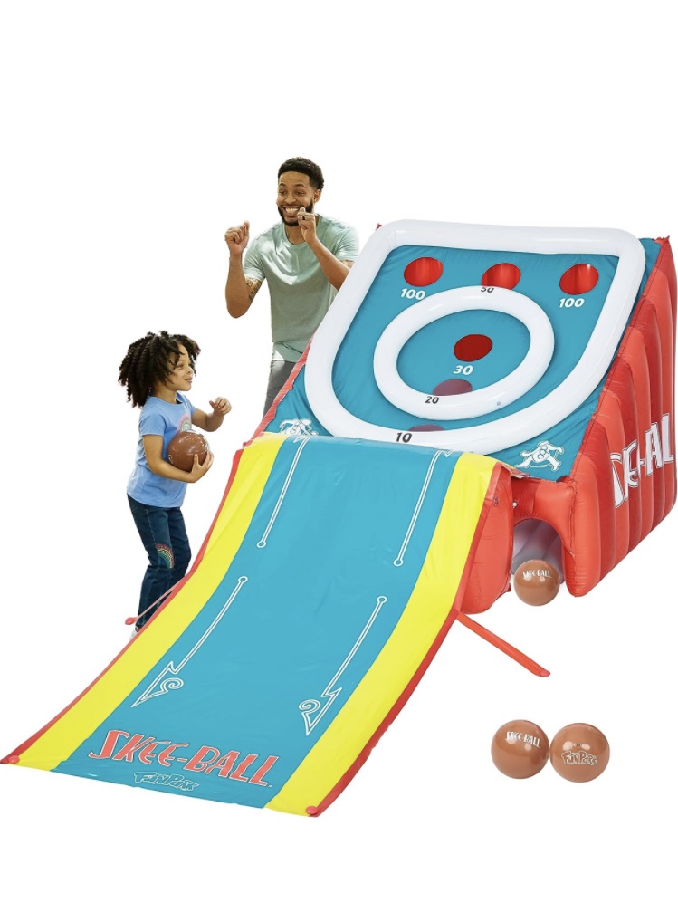 Get ready for some big fun with this inflatable Skee-Ball Game. This outdoor game is perfect for the whole family. 11 Feet Long with 4 Balls
